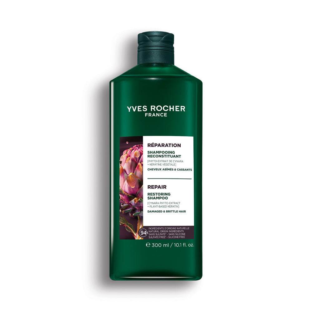 Obnavljajući šampon nježno čisti i obnavlja* kosu cijelom dužinom. Već nakon prve upotrebe kosa je zaštićena od lomljenja, snažnija, podatnija i sjajnija. Njegova formula bez sulfata i silikona obogaćena je ekstraktom artičoke i biljnim keratinom, koji zajedno pružaju dvostruko obnavljajuće djelovanje.